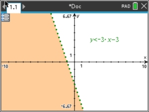NOTE: If you previously used a TI-94+ CE graphing calculator, you know that it had a special feature that could shade only the solution area for a system of inequalities. It was listed under the title "Inequal Intersection". Unfortunately, the TI-Nspire CX II non-CAS does not offer such a build-in "intersection" feature. But, fortunately, the system graphs clearly show the intersection area.