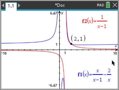 Hint: When working with rational equations, it may be difficult to "see" the intersection point if the viewing window is a small representation of the graph.