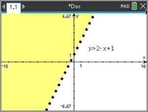 The format will now change from a "function" entry to a "relation" entry. While a function only allows an x-value to have one corresponding y-value, an inequality may have many corresponding y-values making it a "relation", but not a "function".